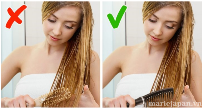 Bước 1: Chải tóc trước khi gội đầu: giảm tình trạng gãy rụng tóc, dễ gội