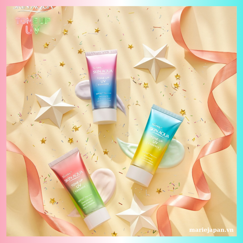 Đây cũng là một loại kem chống nắng tốt đến từ Nhật Bản, được bình chọn là kem chống nắng tốt nhất năm 2018 bởi Cosme (trang thông tin mỹ phẩm hàng đầu tại Nhật Bản). Kem chống nắng Skin Aqua Tone Up với công thức độc đáo giúp che phủ tự nhiên, nâng tông da sáng hồng tràn đầy sức sống. Chỉ số chống nắng cao SPF 50+, PA++++, kết cấu mỏng nhẹ, thấm nhanh, không gây bết dính và cực kỳ phù hợp với khí hậu tại Việt Nam. Ngoài ra, sản phẩm rất an toàn lành tính khi thành phần không chứa cồn, không paraben, không dầu khoáng, không chất bảo quản, còn có thể dùng làm lớp lót trang điểm. Kem chống nắng Skin Aqua Tone Up phù hợp với mọi loại da, kể cả làn da nhạy cảm.