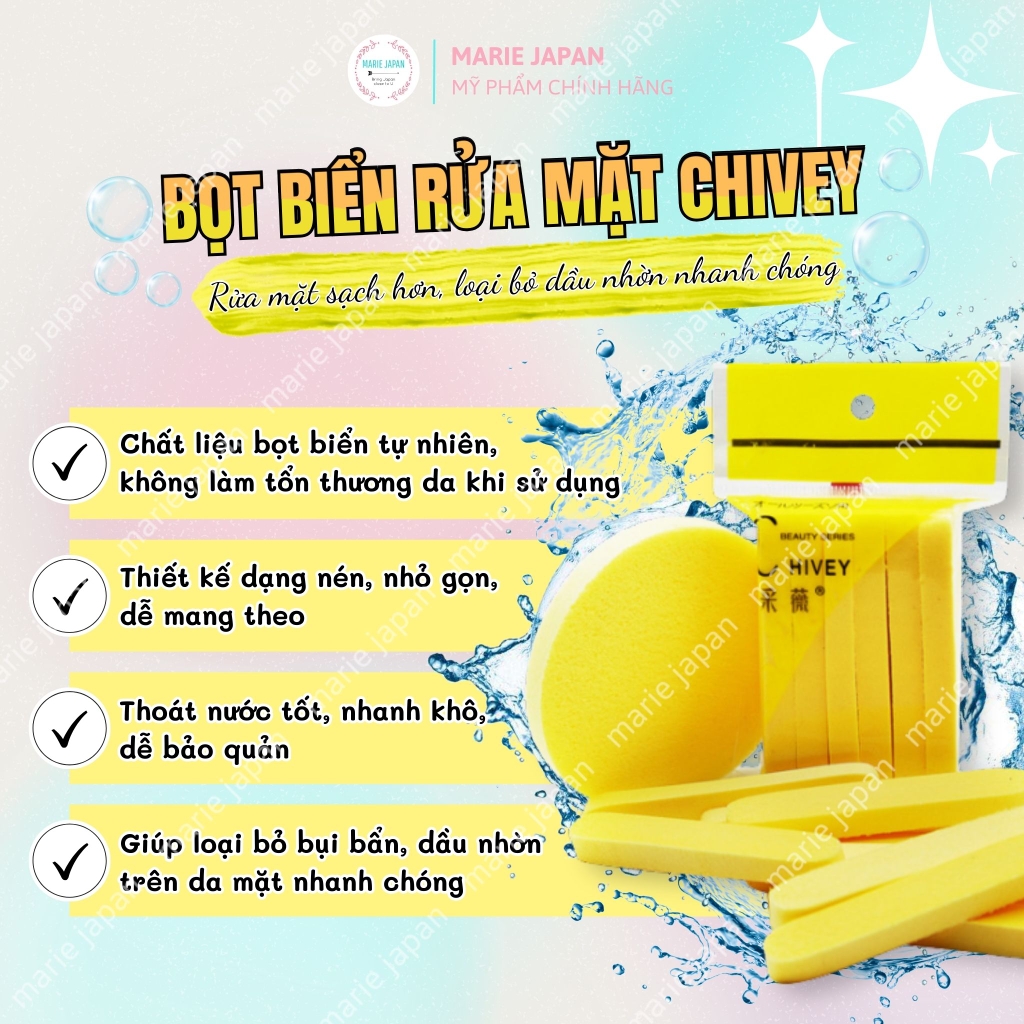 Bông mút rửa mặt nén Chivey Nhật Bản được làm từ bọt biển thiên nhiên nên thân thiện với làn da.