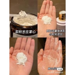 - Dùng muỗng nhỏ trong hộp múc 1 lượng bột vừa phải mix với serum, kem dưỡng, lượng bột khoảng 1/5 so với lượng serum hoặc kem dưỡng.
