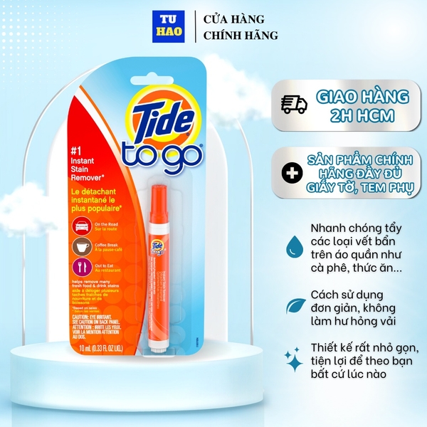 Những vết bẩn từ các loại thức ăn, nước ép ngay trên áo, quần của bạn nhiều khi khiến bạn mất tự tin, ngại ngùng. Những vết bẩn để lâu còn rất khó giặt sạch, chính vì vậy, bạn cần một giải pháp tạm thời đó chính là bút tẩy vết bẩn quần áo Tide To Go 10ml.