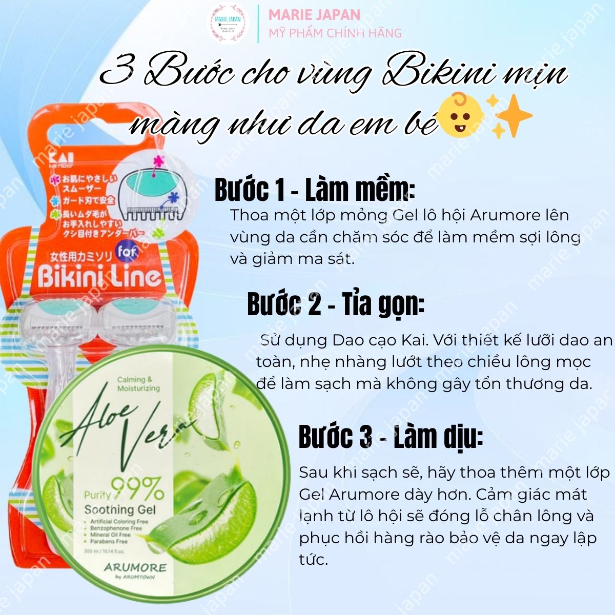 ombo 2 Món Gel Dưỡng Ẩm Lô Hội Arumore + Dao Cạo Bikini Kai Chăm Sóc Da Dịu Nhẹ Nhật Bản Gel 300ml + Set 2 Dao