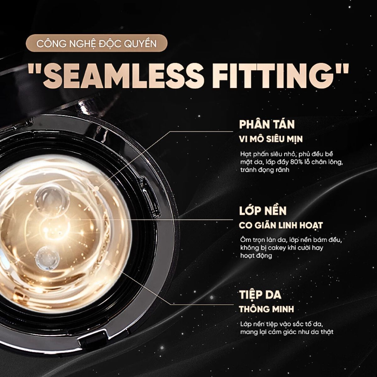 - Tạo nên một nước da hoàn hảo và tự nhiên: Trải nghiệm công nghệ seamless fitting technology giúp lớp phủ kết hợp bền bỉ với các hoạt chất. Sản phẩm phấn siêu mịn, nhẹ của chúng tôi giúp che phủ hoàn hảo ngay cả lỗ chân lông nhỏ, tạo lớp mướt mịn.