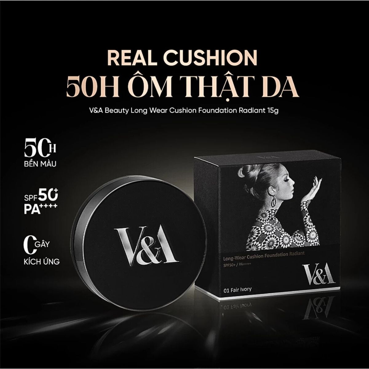 Cushion V&A Beauty Long Wear Foundation Che Khuyết Điểm Mịn Lì Lâu Trôi Hàn Quốc Hộp 15g – Kèm Lõi Refill