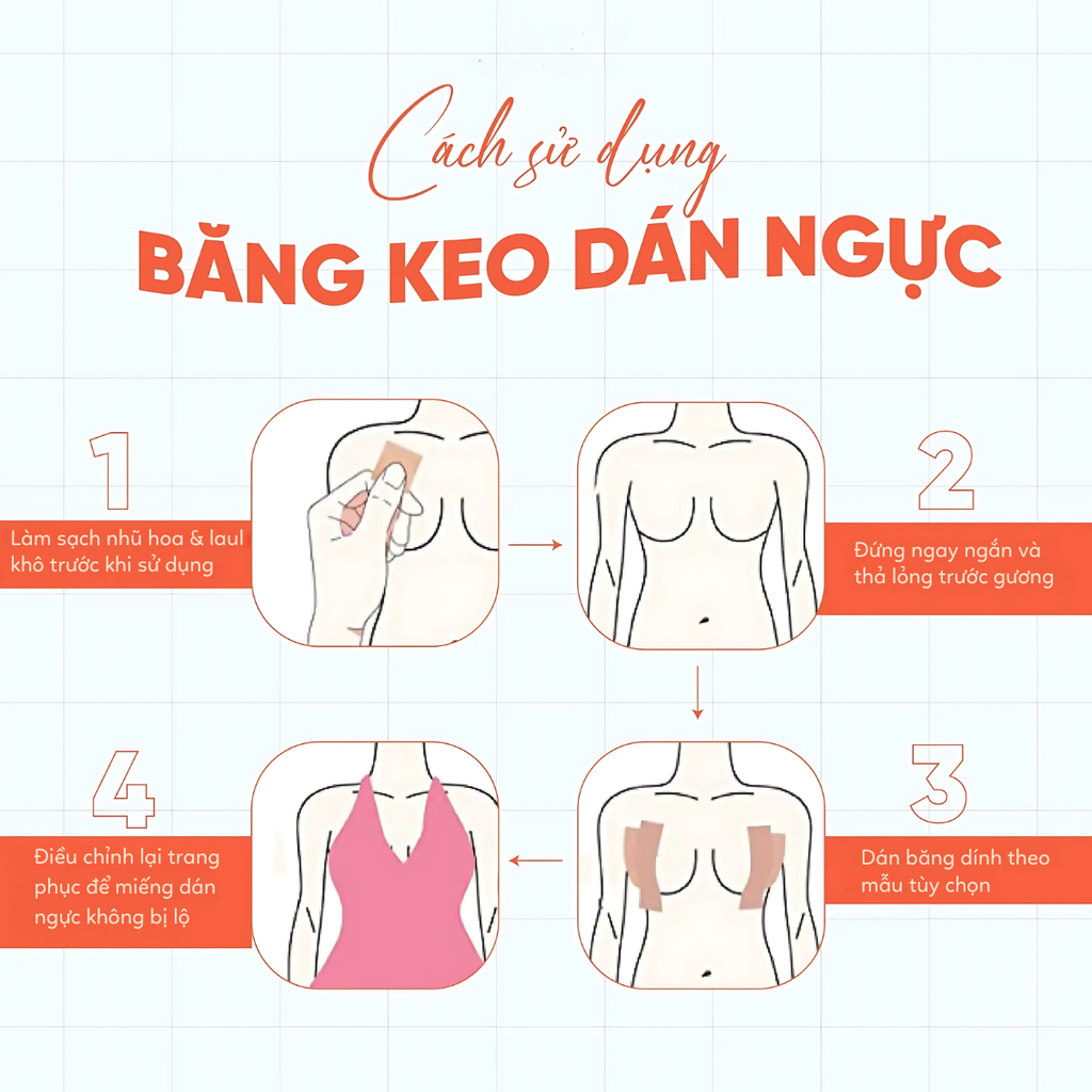 - Lý tưởng cho trang phục hở lưng: Băng keo dán ngực giúp bạn tự tin diện các bộ trang phục hở lưng mà không lo lắng về việc lộ áo ngực.