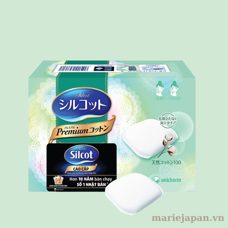 Đây là bông tẩy trang giá rẻ và được sử dụng nhiều nhất, được phụ nữ Nhật Bản tin dùng trong hơn 10 năm liền. Với chất liệu 100% sợi bông tự nhiên, chọn lọc kỹ càng, vô cùng êm ái và dịu nhẹ với da. Bông Bông Tẩy Trang Cao Cấp Silcot Premium giúp lấy đi lớp trang điểm dễ dàng nhưng vẫn giữ lại độ ẩm cho da mà không gây tổn thương hay kích ứng da.