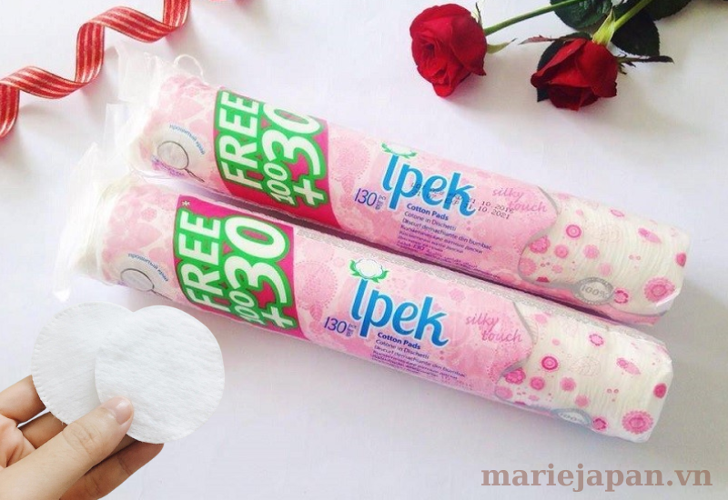 Nhắc đến bông tẩy trang vừa rẻ vừa chất lượng không thể không nói đến bông tẩy trang Ipek. Đây là loại bông tẩy trang hữu cơ được làm từ 100% bông tự nhiên, an toàn và mềm mại cho da. Được thiết kế với dạng miếng bông tròn giúp di chuyển dễ dàng, vừa giúp lấy sạch bụi bẩn vừa hỗ trợ việc dưỡng da hiệu quả. Sợi bông tự nhiên thấm hút tốt giúp tẩy sạch lớp trang điểm từ kem nền, son môi,…mà không bị rát hay để lại xơ bông trên mặt. Đây là một trong những loại bông tẩy trang giá rẻ được sử dụng nhiều nhất hiện nay.