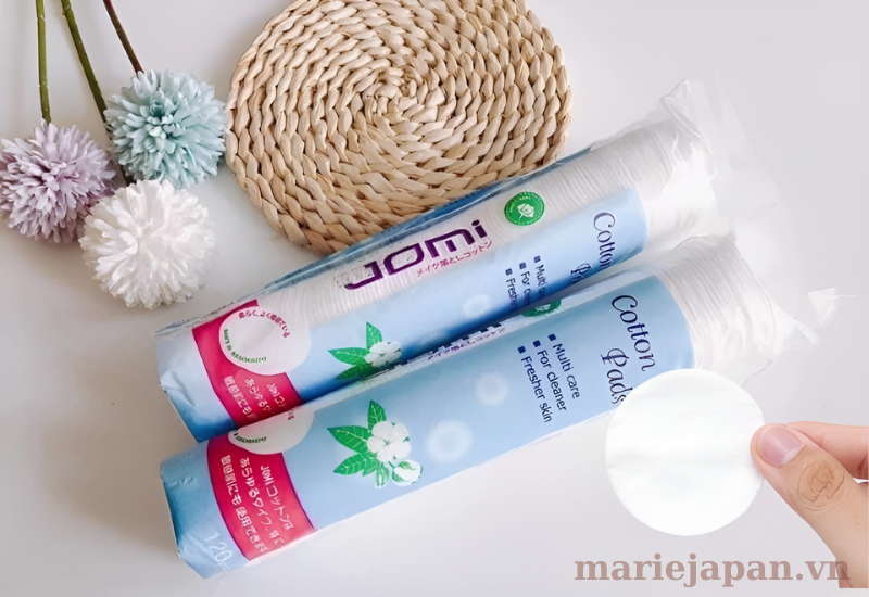 Bông tẩy trang Jomi cũng là một loại bông tẩy trang giá rẻ được sử dụng nhiều nhất hiện nay. Sản phẩm cũng có chất liệu là bông tự nhiên 100%, an toàn và phù hợp với mọi loại da. Khi kết hợp bông tẩy trang Jomi với nước tẩy trang chuyên dụng giúp loại bỏ 95%-98% dầu thừa và cặn bã trên da mặt.