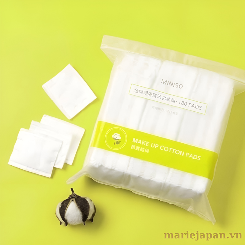 Với thành phần 100% cotton tự nhiên, Bông tẩy trang Miniso giúp làm sạch da, loại bỏ bụi bẩn, bã nhờn, lớp make-up một cách hiệu quả. Sản phẩm an toàn, dành cho mọi loại da với chất bông mịn màng, khả năng thấm hút tốt, không để lại xơ bông trên da sau khi sử dụng. Không ngạc nhiên khi đây là bông tẩy trang giá rẻ được ưa chuộng.