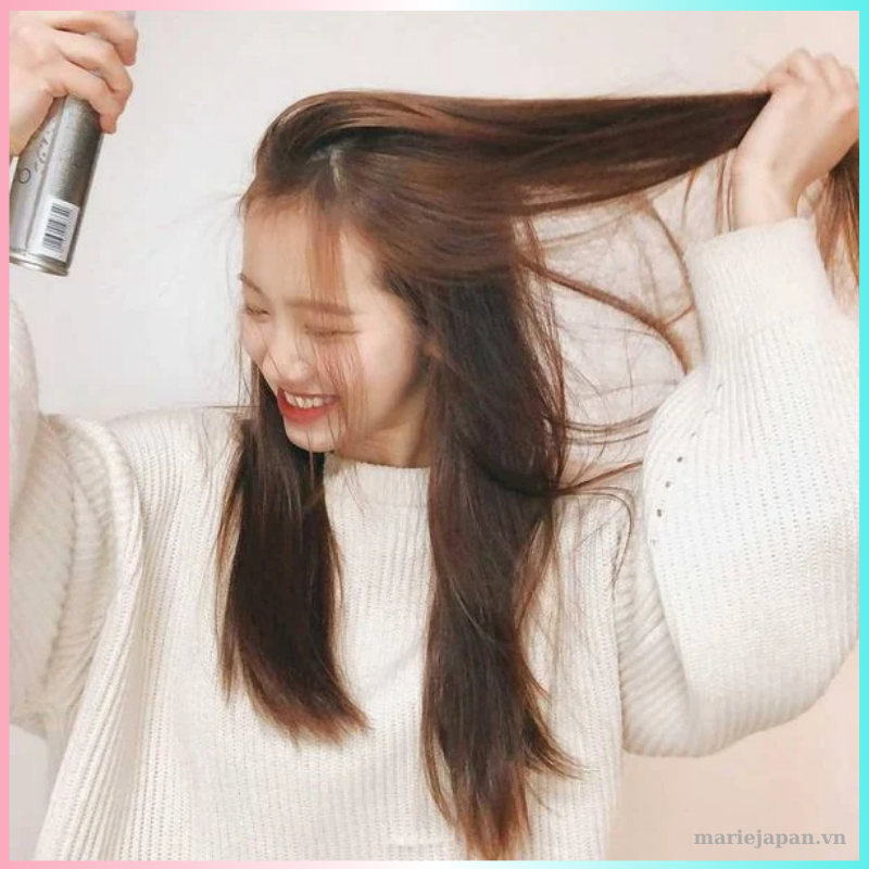 - Bước 2: Giữ bình xịt thẳng và cách da đầu 20cm rồi xịt vào tóc.