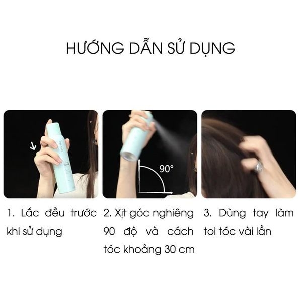 - Lắc đều, cầm chai xịt cách đỉnh đầu khoảng 20-28 cm, sau đó dùng tay xới nhẹ cho dầu gội thấm vào tóc.