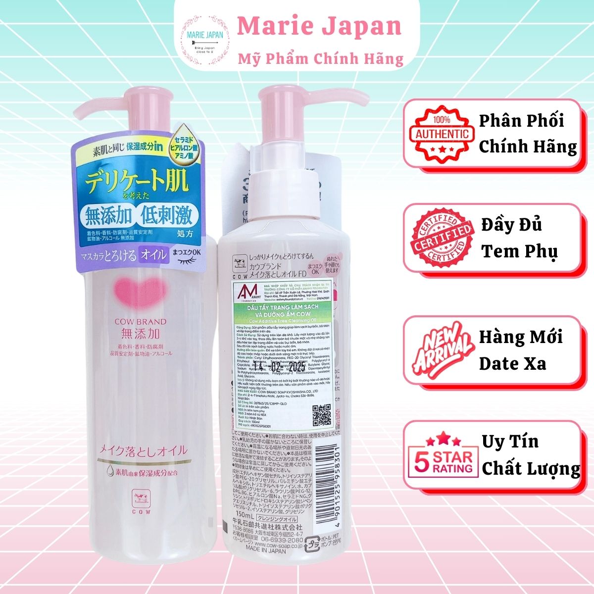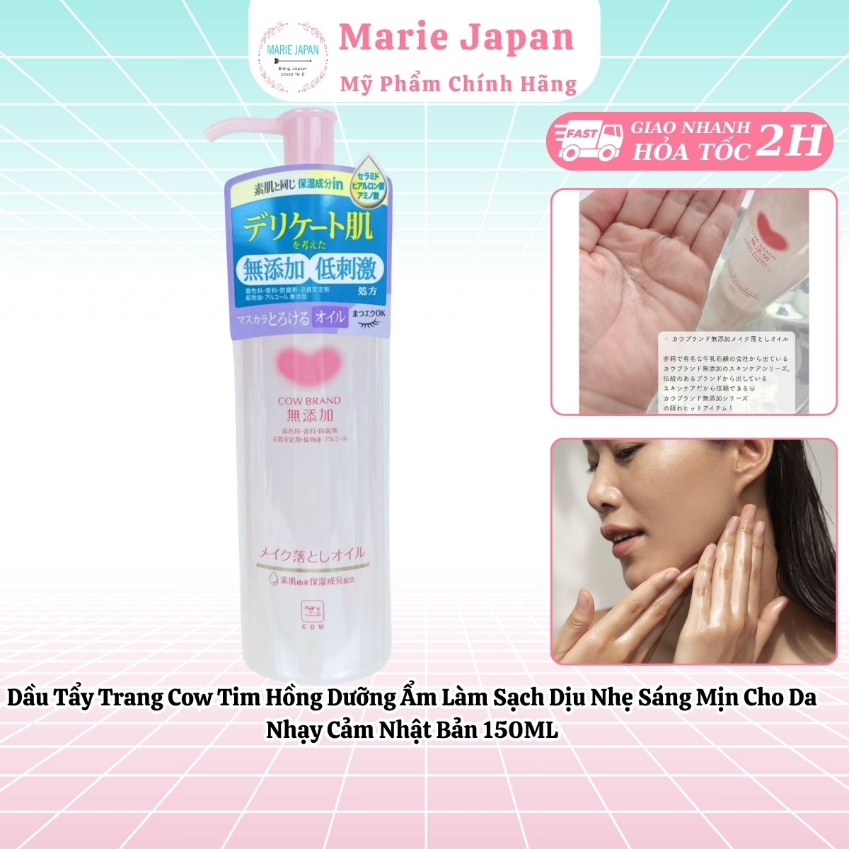 Dầu Tẩy Trang Cow Tim Hồng Dưỡng Ẩm Làm Sạch Dịu Nhẹ Sáng Mịn Cho Da Nhạy Cảm Nhật Bản 150ML