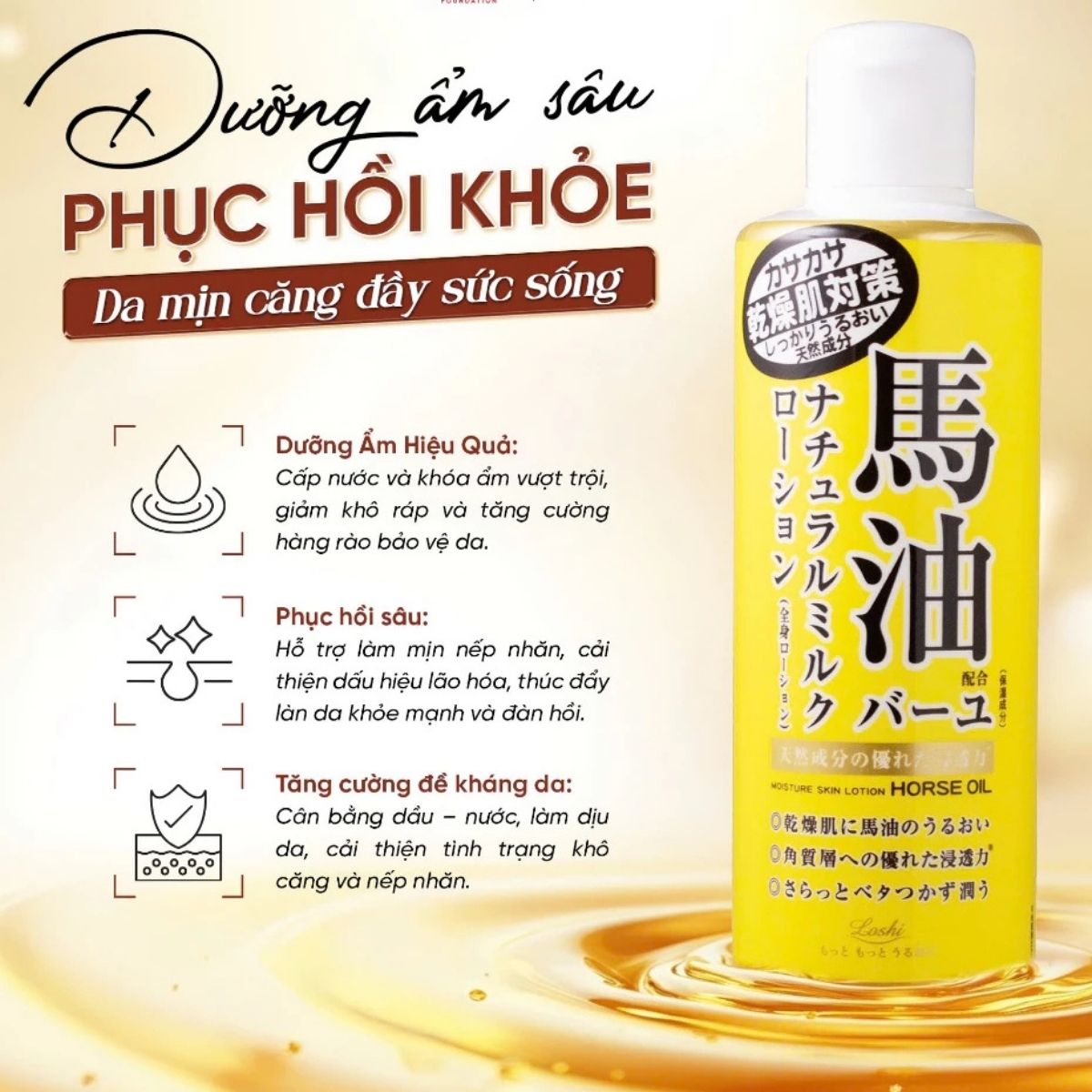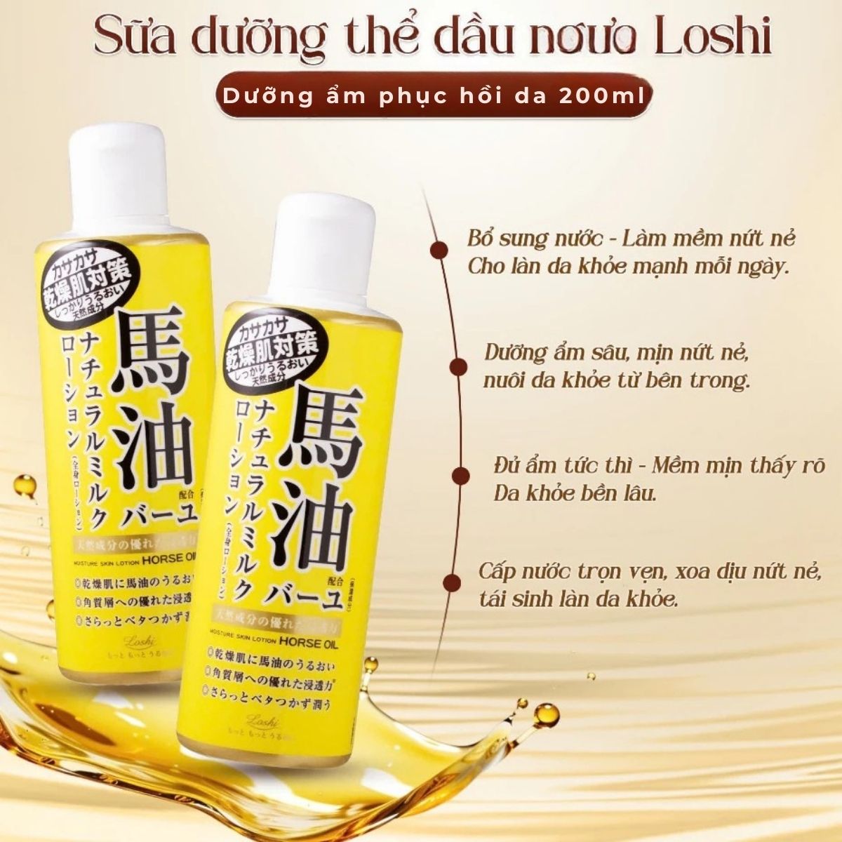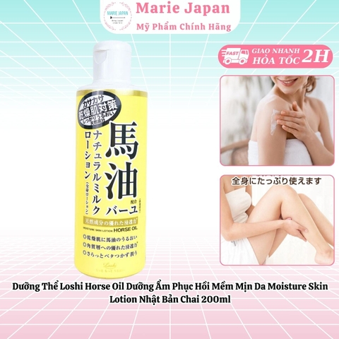 Dưỡng Thể Loshi Horse Oil Dưỡng Ẩm Phục Hồi Mềm Mịn Da Moisture Skin Lotion Nhật Bản Chai 200ml