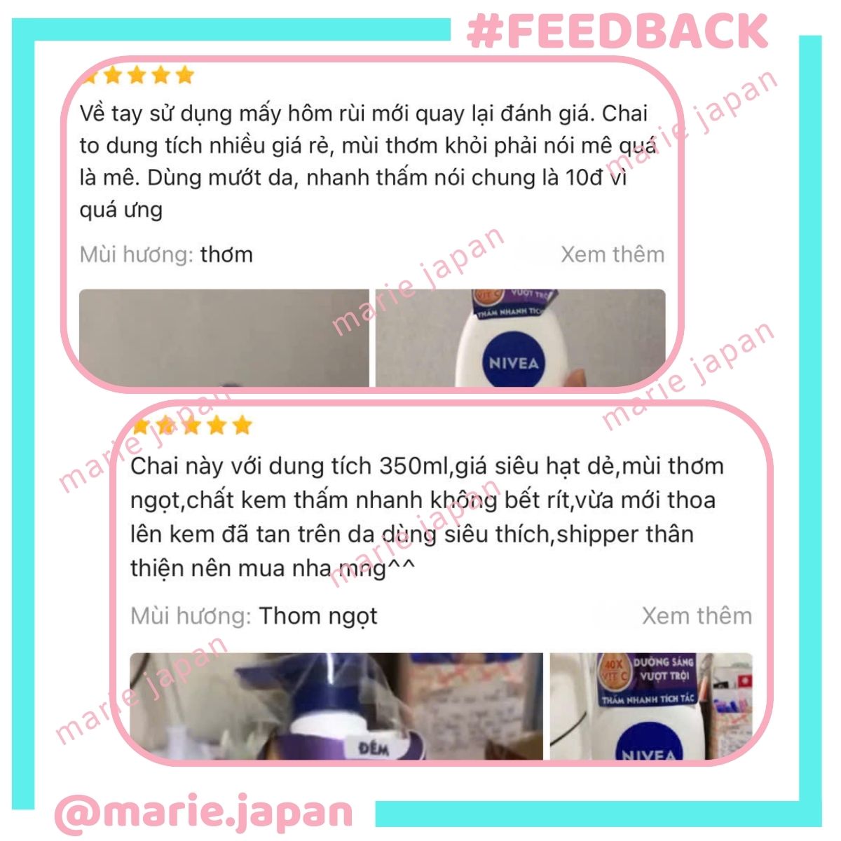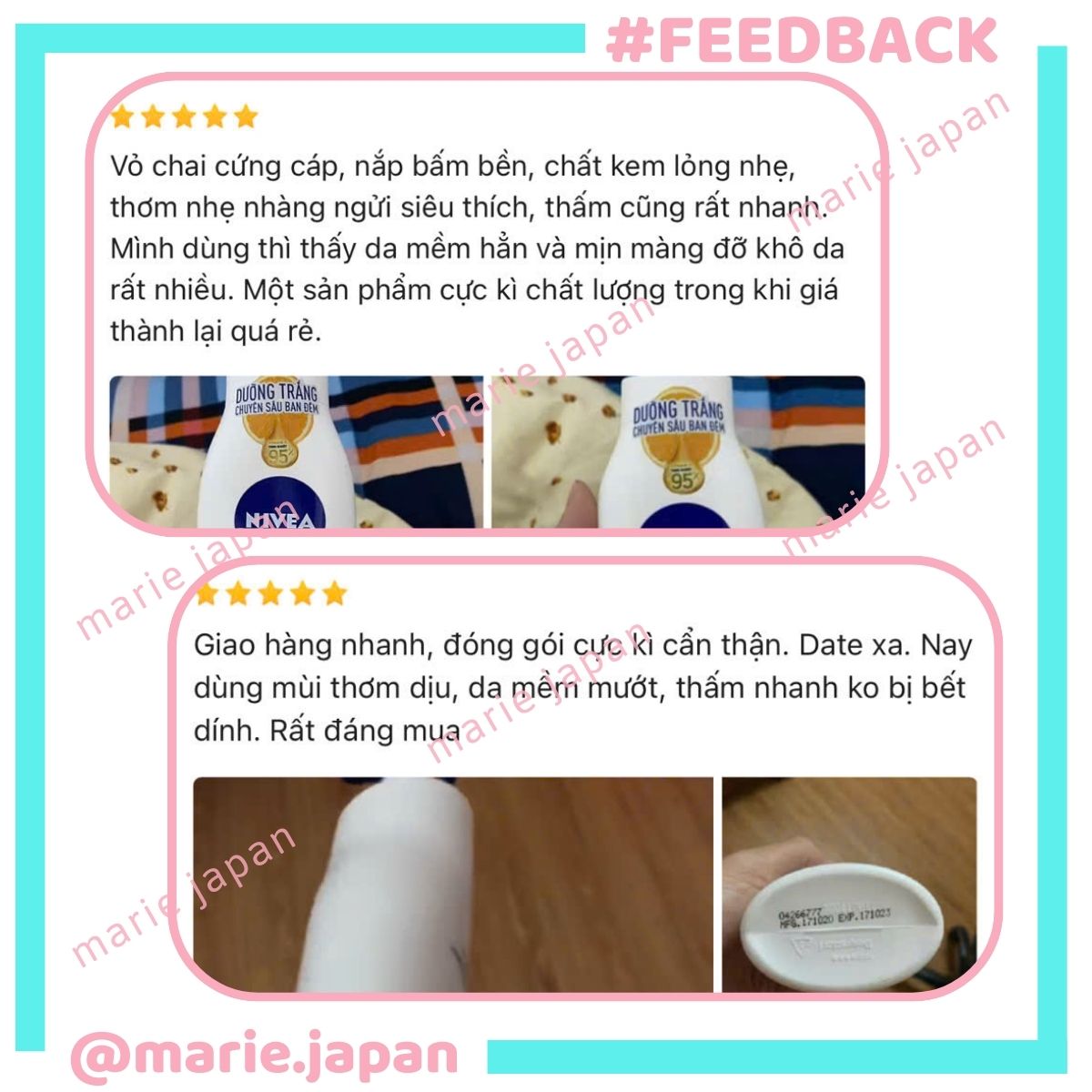 ❤ MARIE JAPAN xin cảm ơn quý khách đã tin tưởng và sử dụng sản phẩm của shop. Shop sẽ không ngừng cải tiến, mang lại những dòng sản phẩm và dịch vụ tốt nhất đến tay khách hàng! ❤️