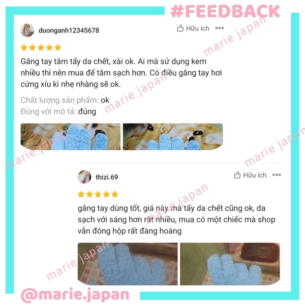 “Găng tay tắm tẩy da chết, xài ok. Ai mà sử dụng kem nhiều thì nên mua để tắm sạch hơn. Có điều găng tay hơn cứng xíu kì nhẹ nhàng sẽ ok.”