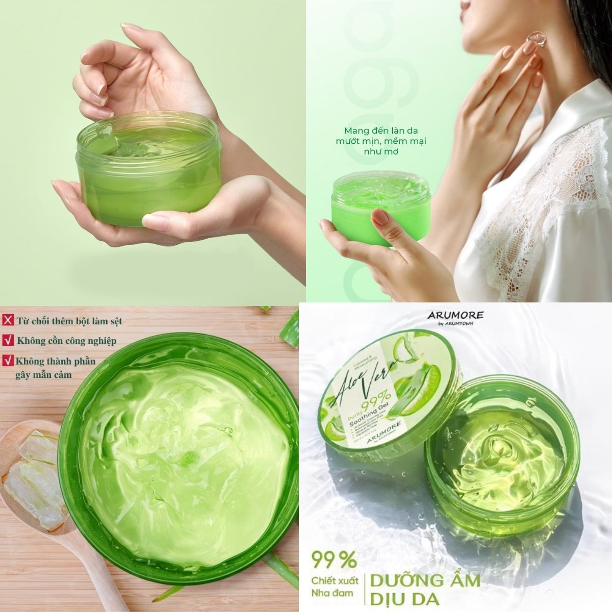 Gel Dưỡng Ẩm Lô Hội Arumore Aloe Vera 99% Làm Dịu Da Phục Hồi Dưỡng Ẩm Toàn Thân – Hàn Quốc – Hũ 300ml