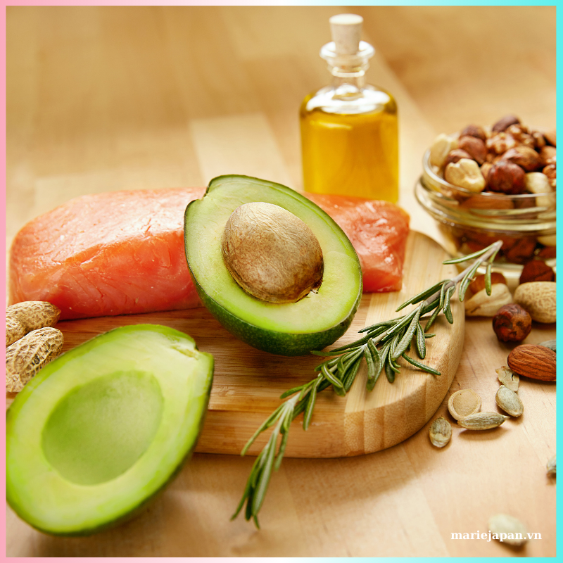 Những thực phẩm như cá hồi, cá ngừ, cá thu và quả bơ chứa rất nhiều chất béo omega 3. Ăn những loại thực phẩm này có tác dụng ngăn ngừa tình trạng mất nước giữa các lớp da, giảm viêm, viêm khớp (viêm gây hại cho việc sản xuất Collagen), chống trầm cảm và ngăn ngừa nguy cơ lão hóa da. Đồng thời Omega 3 còn giúp tăng độ đàn hồi và cải thiện độ ẩm cho da, từ đó da giữ được collagen tốt hơn, ngăn chặn sự giảm sút Collagen và kích thích sản sinh ra Collagen cho cơ thể. Để làn da luôn mịn màng và trẻ trung thì bạn nên sử dụng các loại thực phẩm có Omega 3 ít nhất 2 lần/tuần.