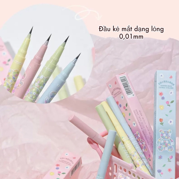 Bút kẻ mắt 2 đầu GOGO TALES Garden Bear GT408 sự kết hợp hoàn hảo giữa đầu bút gel sáp và đầu bút lọng nước siêu mảnh, giúp tạo kiểu kẻ mắt khác nhau theo ý muốn và thay đổi kiểu dáng của bạn.