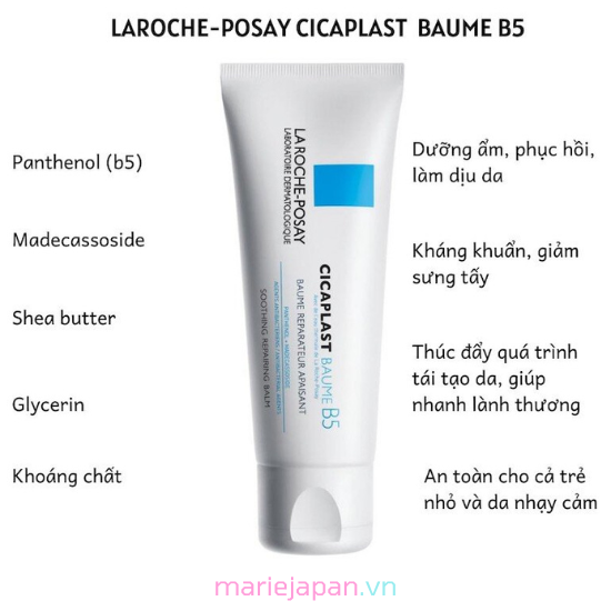 - Panthenol 5% (vitamin B5): giúp làm dịu da khi tổn thương