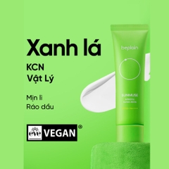 Kem chống nắng Beplain Sunmuse Sunscreen SPF50+/PA+++ là sản phẩm thuộc thương hiệu Beplain – một cái tên đình đám trong ngành mỹ phẩm Hàn Quốc. Với chỉ số SPF50+ và PA+++, sản phẩm mang lại khả năng bảo vệ vượt trội trước tia UVA và UVB giúp nàng tự tin dưới ánh nắng mặt trời. Đặc biệt, thành phần thuần chay cùng công thức an toàn không chỉ giúp bảo vệ mà còn nâng niu làn da nhạy cảm.