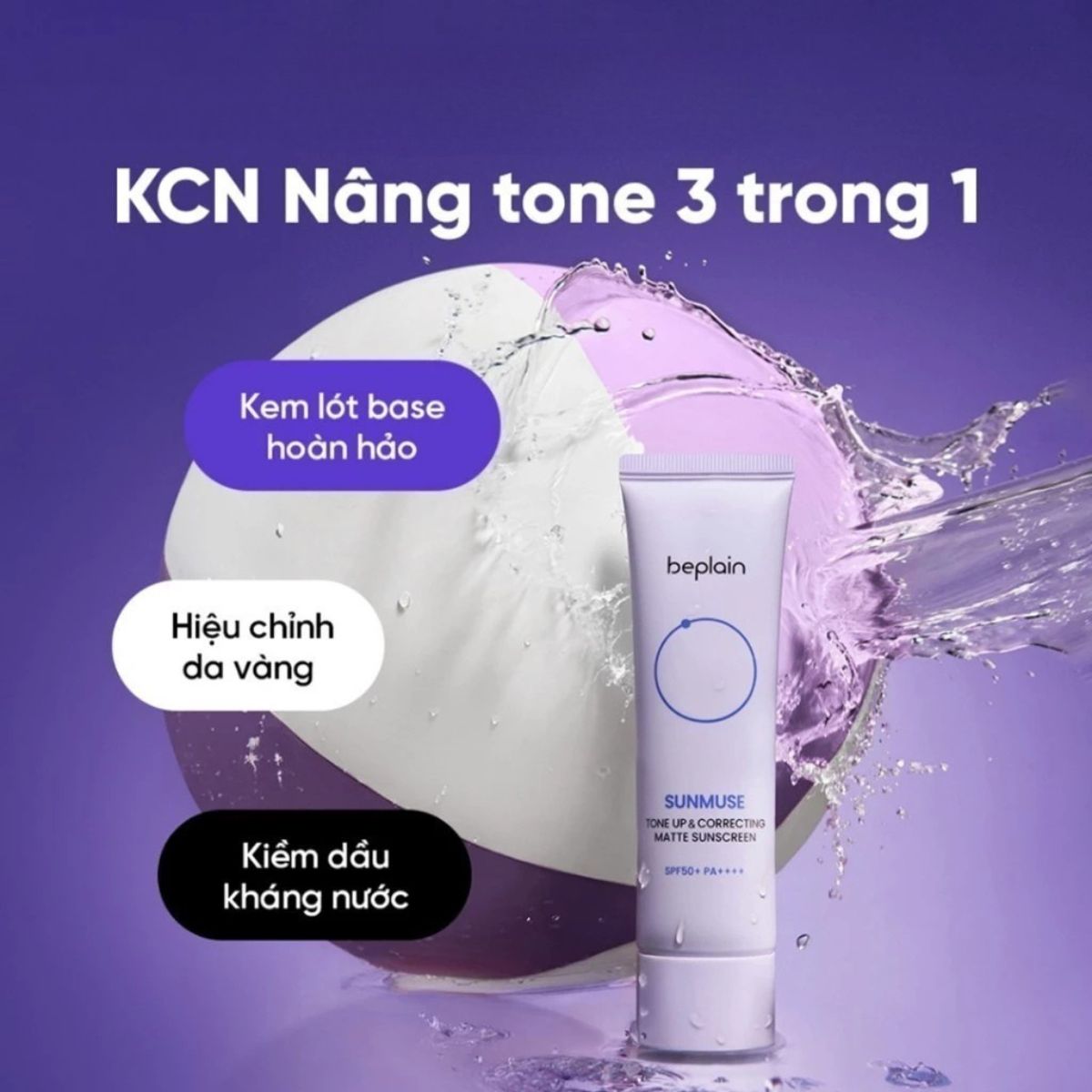 Dành cho làn da xỉn màu và thiếu sức sống, kem chống nắng màu tím của Beplain không chỉ bảo vệ mà còn mang lại vẻ đẹp tự nhiên và rạng rỡ. Công thức 3 trong 1: