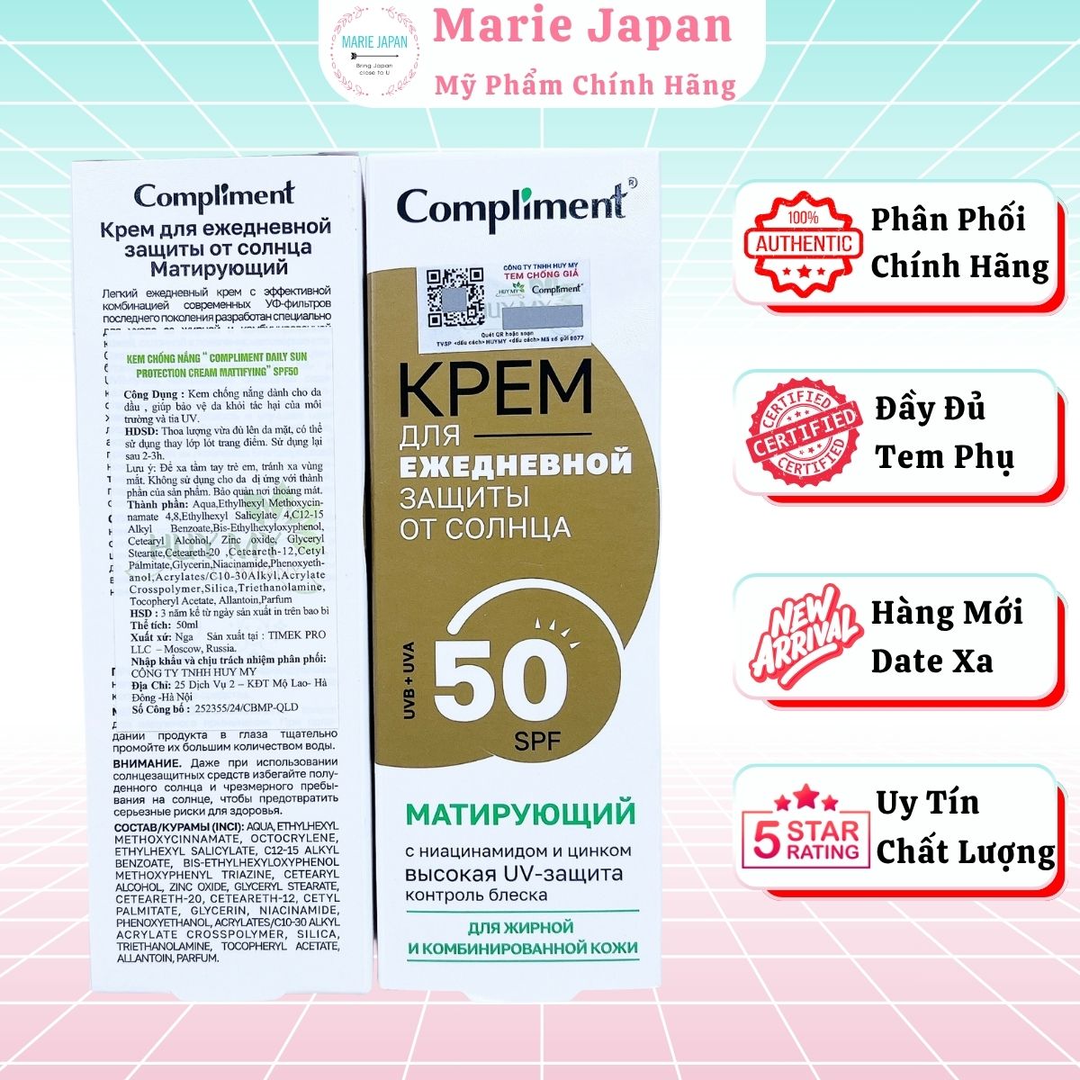 Kem Chống Nắng Compliment Daily Sun Dưỡng Ẩm Nâng Tone Kiềm Dâu Tone Up SPF50+ PA++++ Nga 50ml