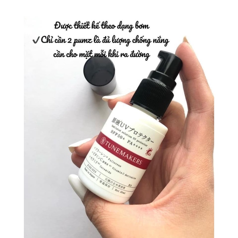 – Tỉ lệ vàng công thức Fullerene 5 : Vitamin C 3 : Ceramide 2 giúp loại bỏ hoàn toàn tia UV xâm nhập vào da gây phá hủy bên trong, phòng ngừa các điều kiện môi trường có khả năng gây hại. Dưỡng trắng và giúp tăng cường độ ẩm không bị khô sạm khi tiếp xúc quá lâu với ánh nắng.