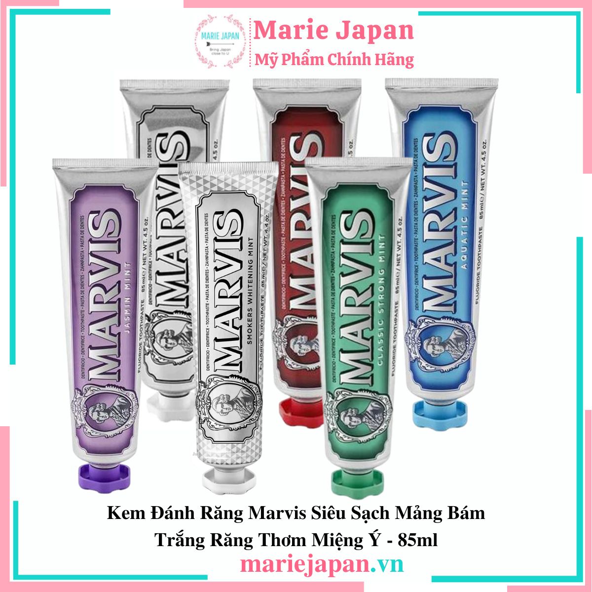 Hãy để kem đánh răng Marvis là một trong những sản phẩm kem đánh răng ưu việt và trở thành sự lựa chọn hoàn hảo cho quá trình chăm sóc răng miệng của bạn. Nếu bạn vẫn chưa biết kem đánh răng Marvis bán ở đâu thì chần chừ gì mà không ghé Marie Japan ngay! Chăm sóc răng chắc khỏe và hơi thở thơm tho cũng là cách để yêu bản thân hơn mỗi ngày.