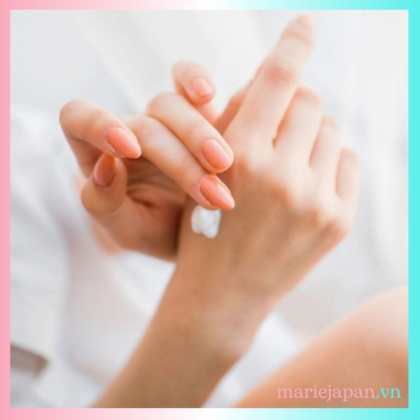 - Thoa đều kem lên da tay, massage nhẹ nhàng để kem thẩm thấu hoàn toàn.