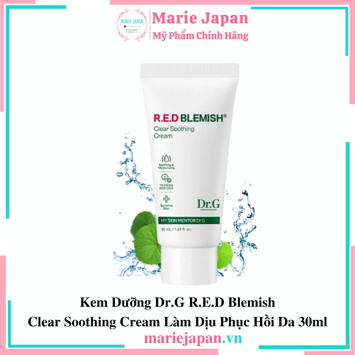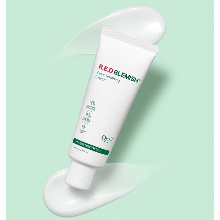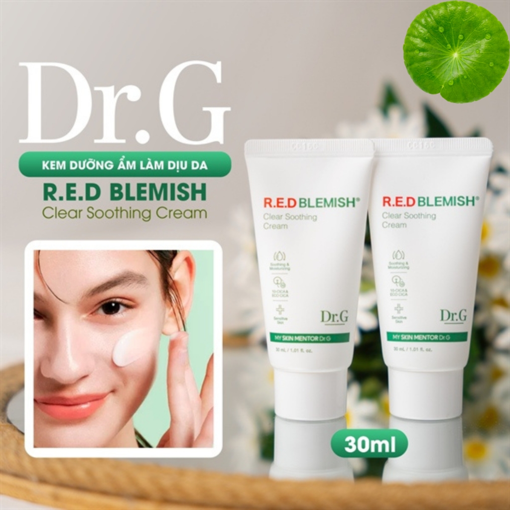 Kem Dưỡng Ẩm Làm Dịu Da, Phục Hồi Và Giảm Đỏ Da Dr.G R.E.D Blemish Clear Soothing dòng kem dưỡng dạng gel thuộc thương hiệu Dr.G với các thành phần chứa phức hợp 5 Cica, Niacinamide, Panthenol giúp dưỡng ẩm, làm dịu và phục hồi làn da đang kích ứng, giảm tình trạng da mẩn đỏ do thời tiết và dị ứng với mỹ phẩm, chống oxy hóa, củng cố hàng rào bảo vệ da.