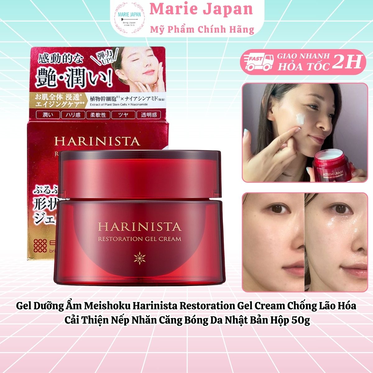 Gel Dưỡng Ẩm Meishoku Harinista Restoration Gel Cream Chống Lão Hóa Cải Thiện Nếp Nhăn Căng Bóng Da Nhật Bản Hộp 50g