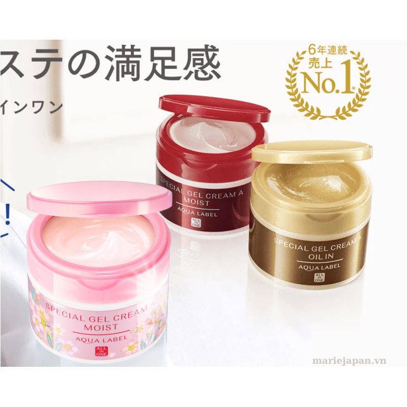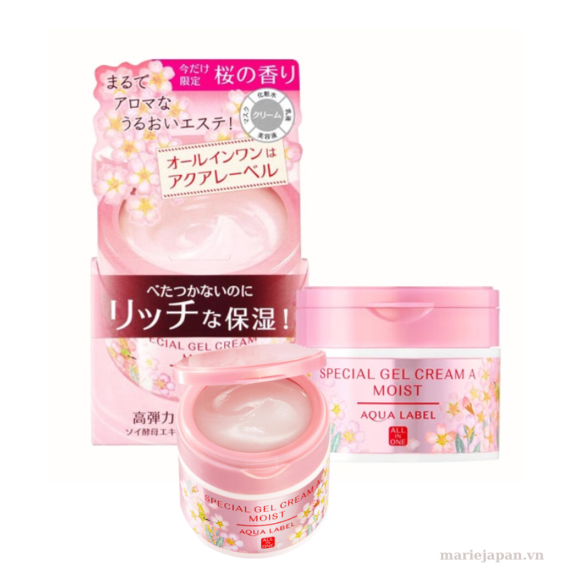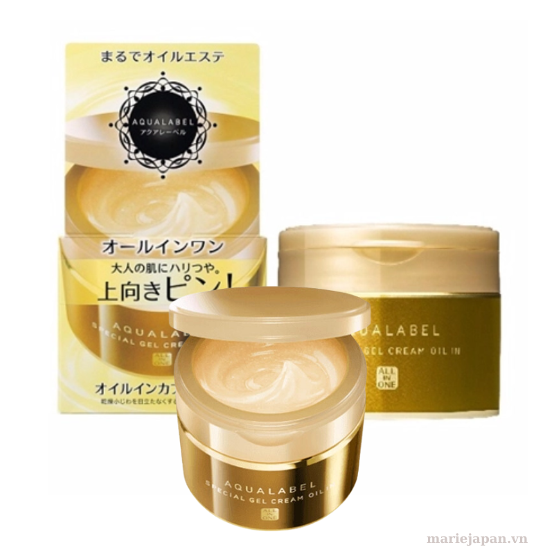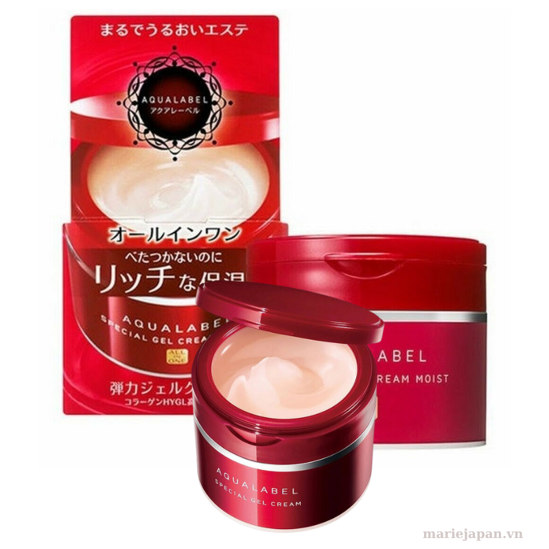 - Shiseido Aqualabel Special Gel Cream Nhật Bản là sự lựa chọn hàng đầu với 5 công dụng trong 1 sản phẩm: nước hoa hồng, sữa dưỡng da, tinh chất dưỡng ẩm, kem dưỡng, mặt nạ ngủ.