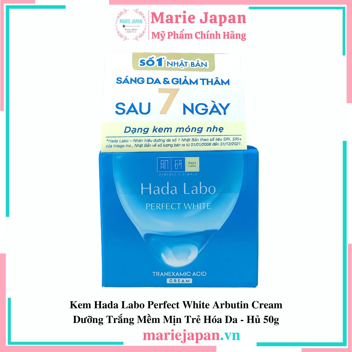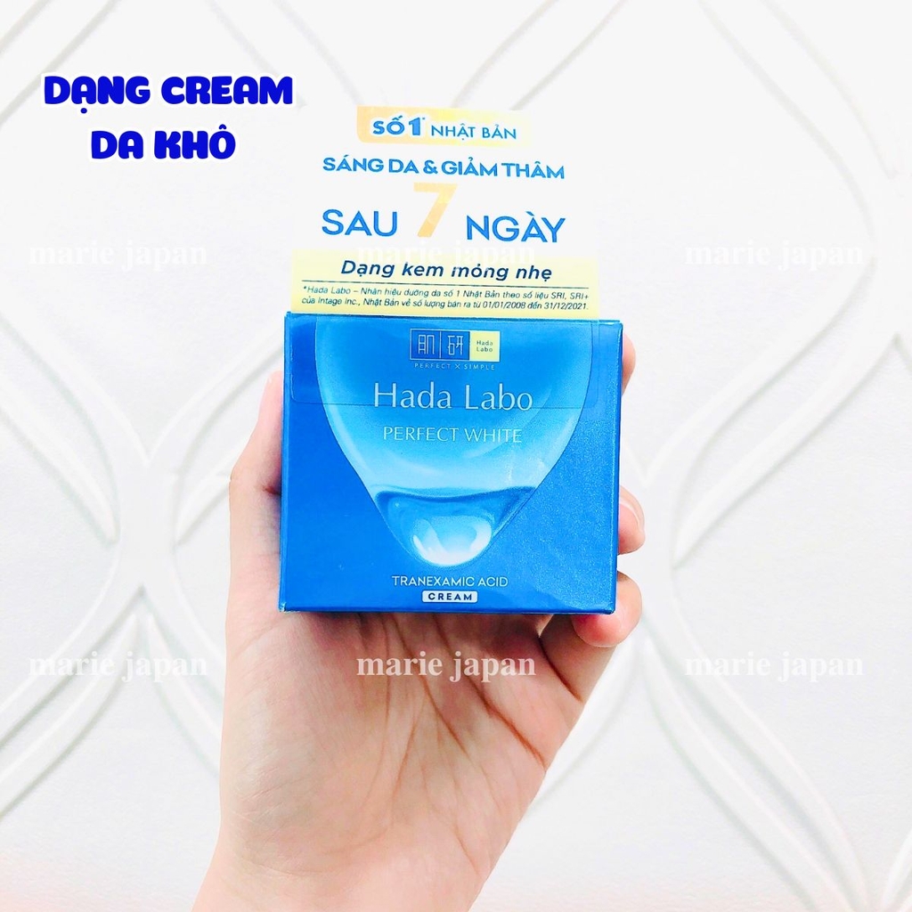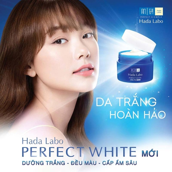 Hada Labo Perfect White Arbutin Cream với các tinh chất giúp dưỡng da trắng mịn hoàn hảo, đồng thời dưỡng ẩm và cải thiện làn da thâm sạm.