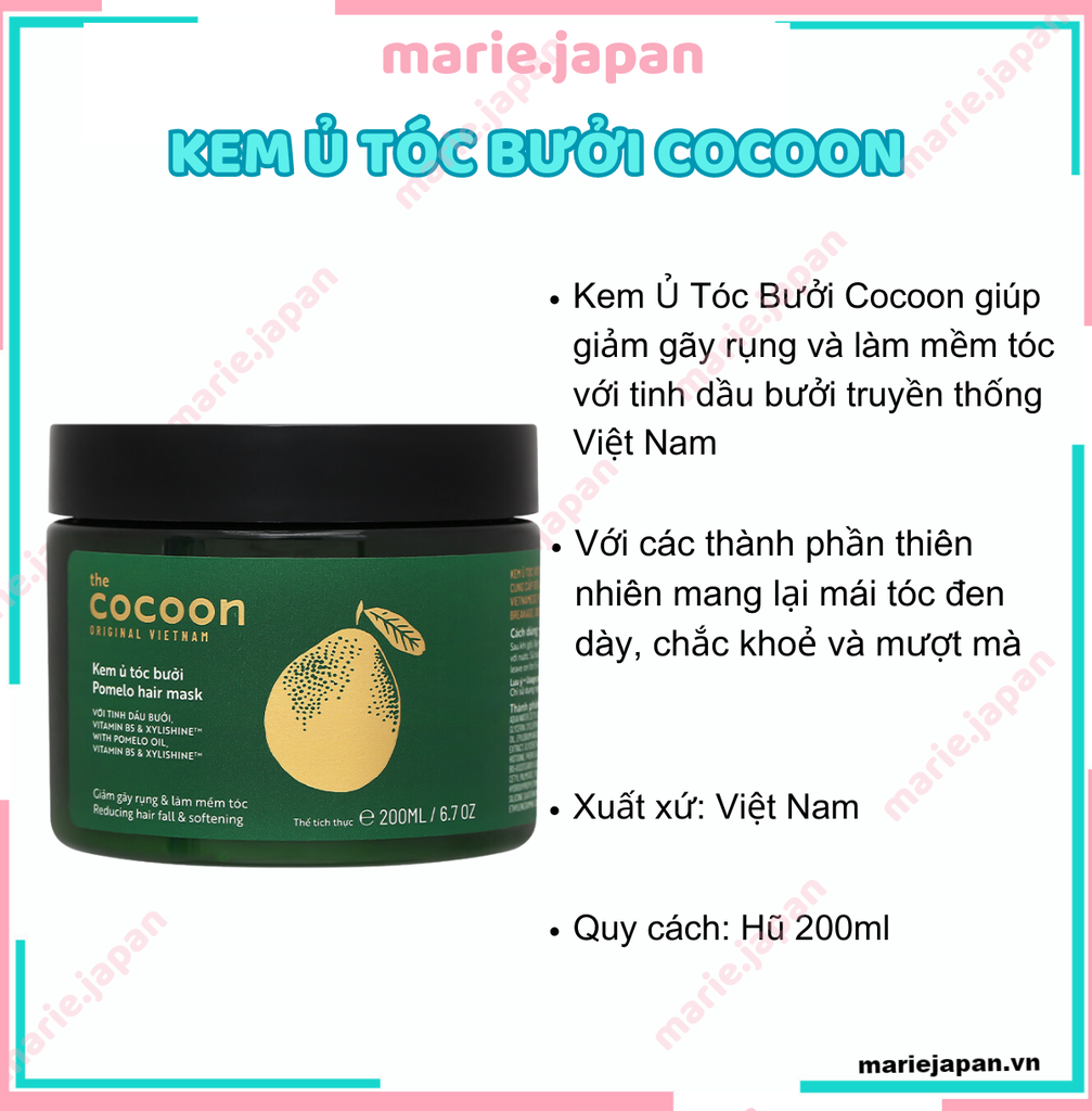 Qua bài viết, Marie hy vọng bạn đã có những thông tin cơ bản về Kem ủ tóc bưởi Cocoon. Nếu có thắc mắc về sản phẩm thì nhắn ngay cho Marie để được tư vấn chi tiết nhé!. Mua ngay Kem ủ tóc bưởi Cocoon chính hãng giá tốt tại Marie Japan nhé!