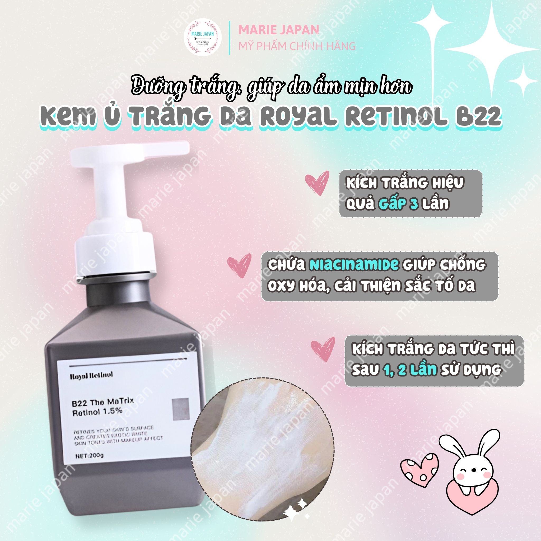 HƯỚNG DẪN SỬ DỤNG KEM Ủ TRẮNG DA ROYAL RETINOL B22 MATRIX RETINOL 1.5%: