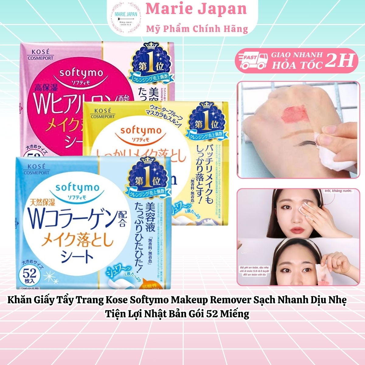 Khăn Giấy Tẩy Trang Kose Softymo Makeup Remover Sạch Nhanh Dịu Nhẹ Tiện Lợi Nhật Bản Gói 52 Miếng
