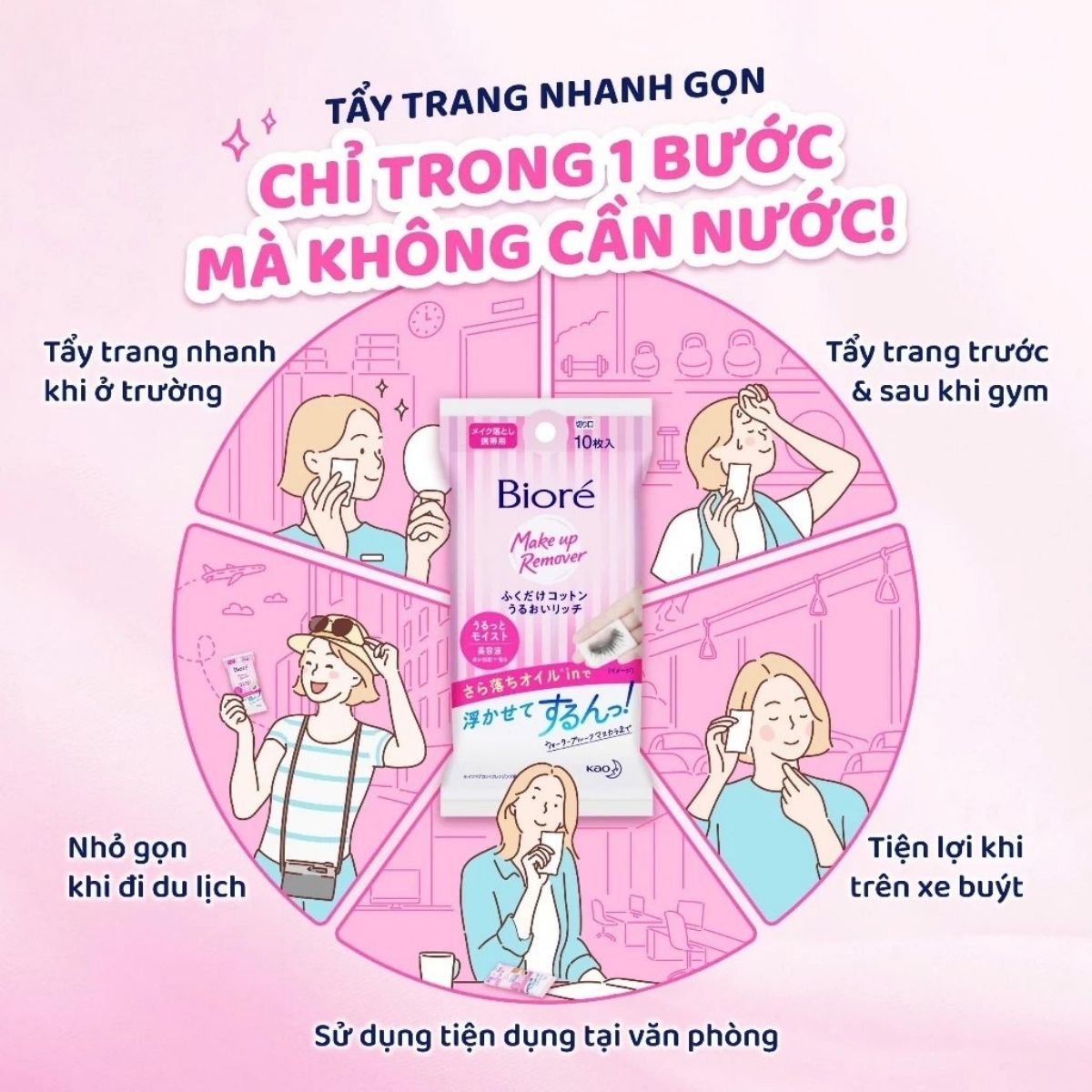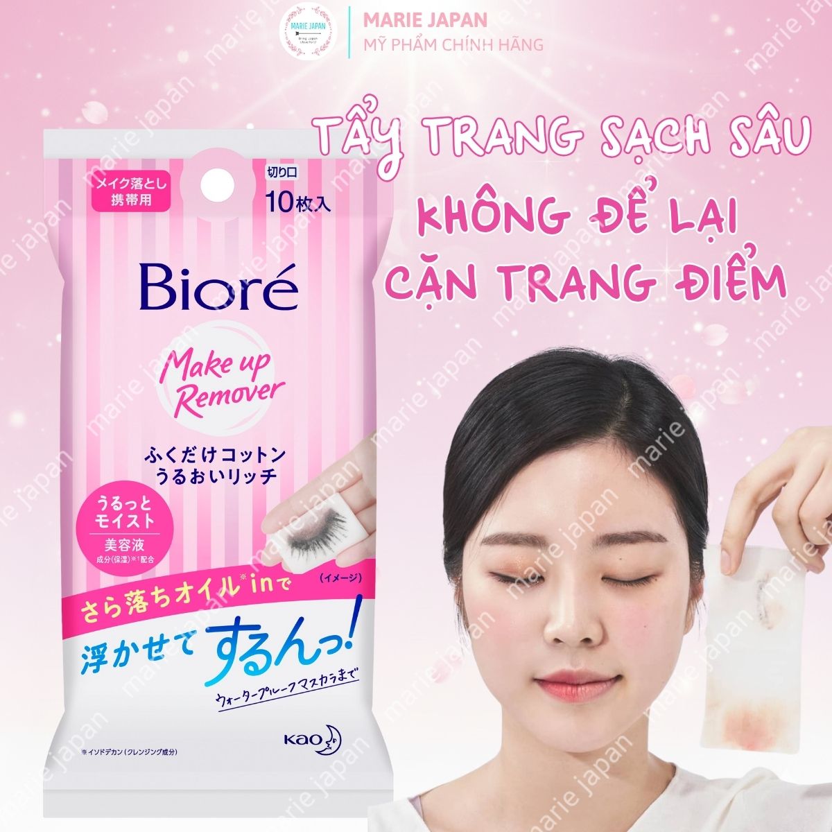 Khăn Tẩy Trang Biore Makeup Remove Cleansing Làm Sạch Dịu Nhẹ Nhật Bản Túi 10 Miếng