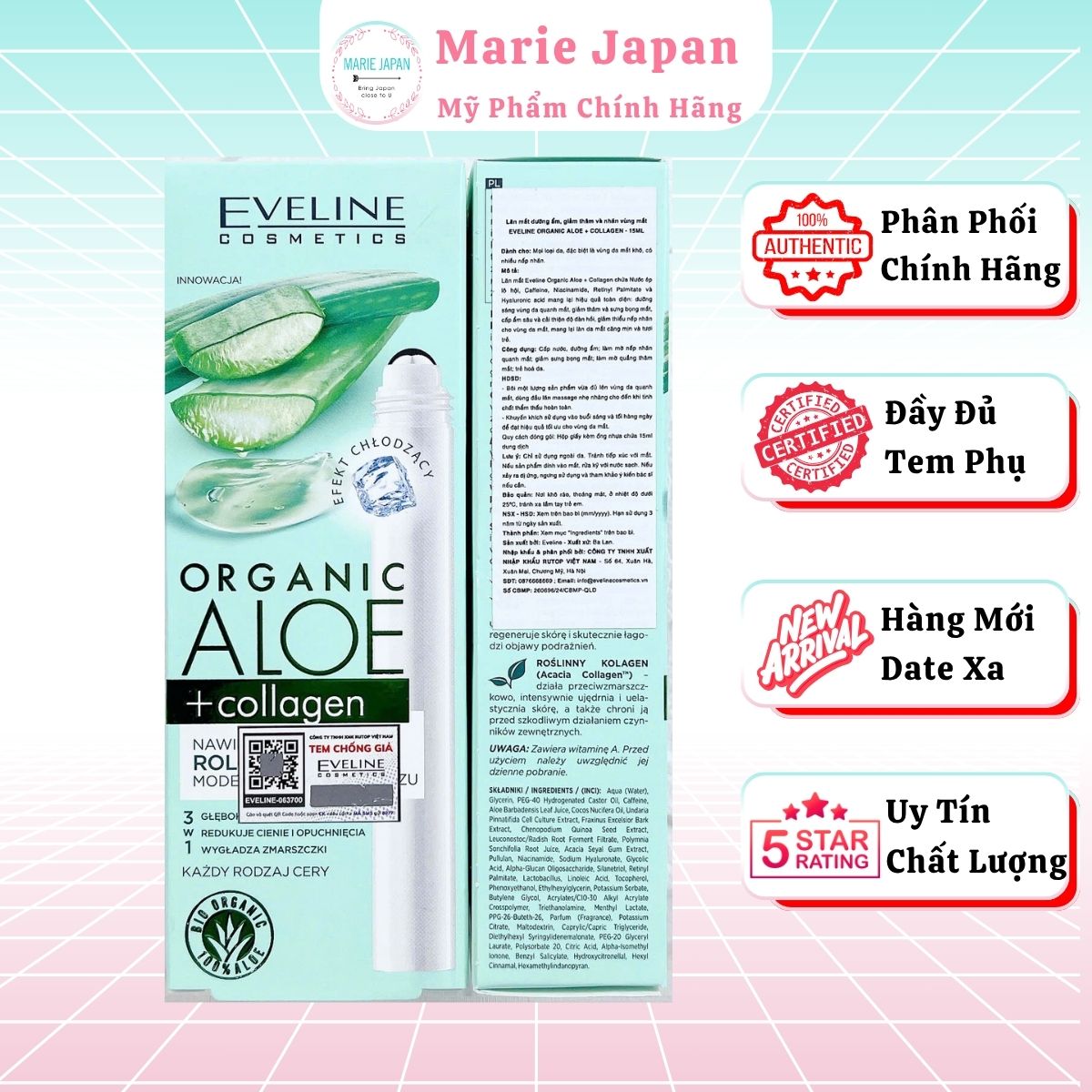 Lăn Mắt Eveline Organic Aloe + Collagen Cấp Ẩm Nâng Cơ Giảm Thâm Bọng Hiệu Quả Ba Lan 15ml
