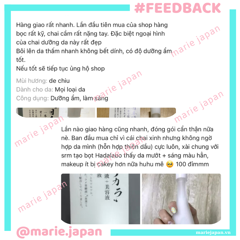 FEEDBACK THẬT VỀ SẢN PHẨM CỦA KHÁCH NHÀ MARIE JAPAN