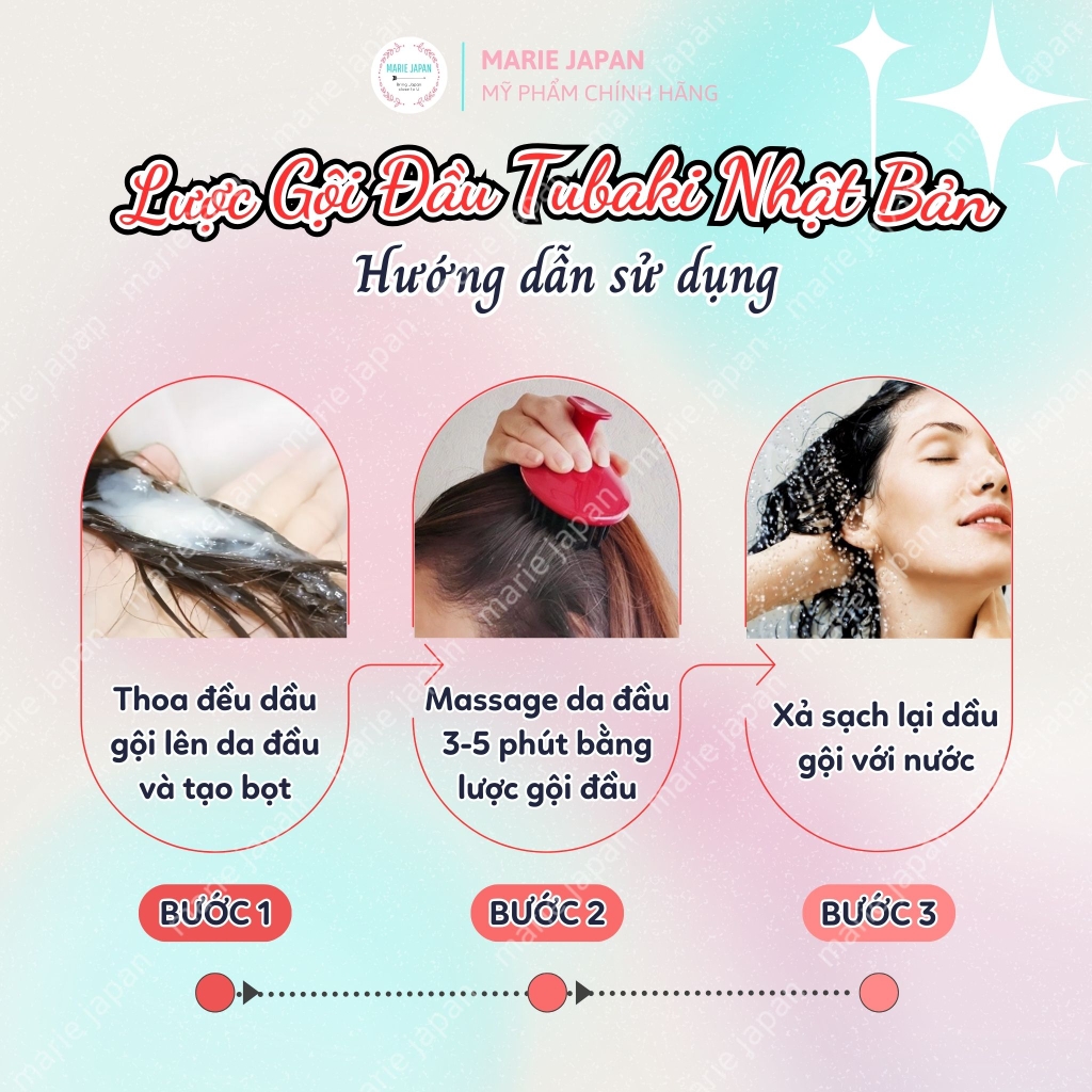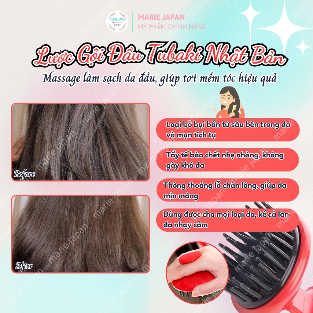 Lược Gội Đầu Tubaki Massage Làm Sạch Da Đầu Tơi Mềm Tóc Nhật Bản Chính Hãng