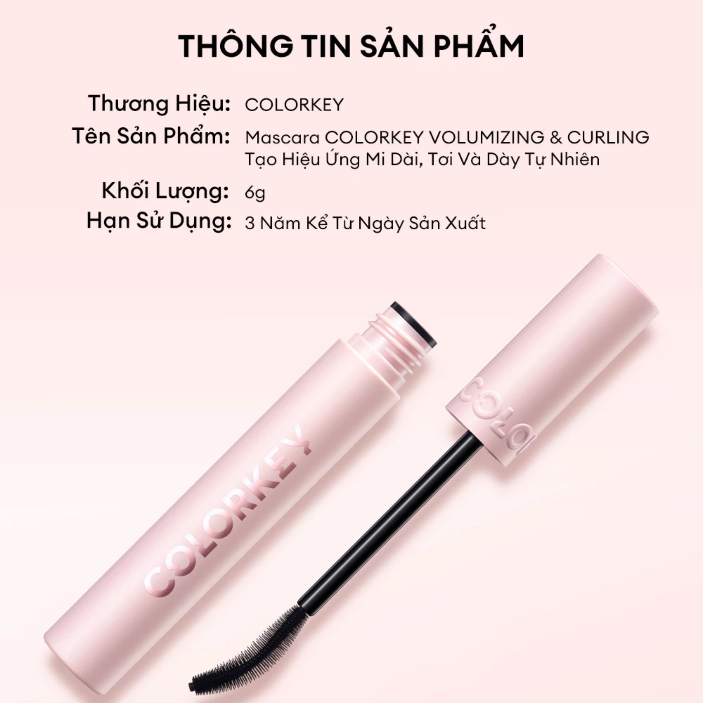 Mascara Colorkey Volumizing & Curling Siêu Dài Cong Mi Tự Nhiên Lâu Trôi Cây 6G