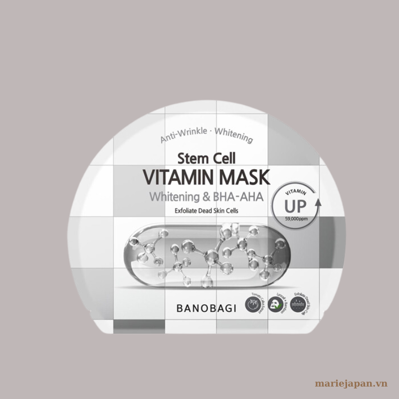 Mặt nạ giấy Banobagi Stem Cell có thành phần chiết xuất từ thiên nhiên hỗ trợ trắng da và làm mềm mịn da.