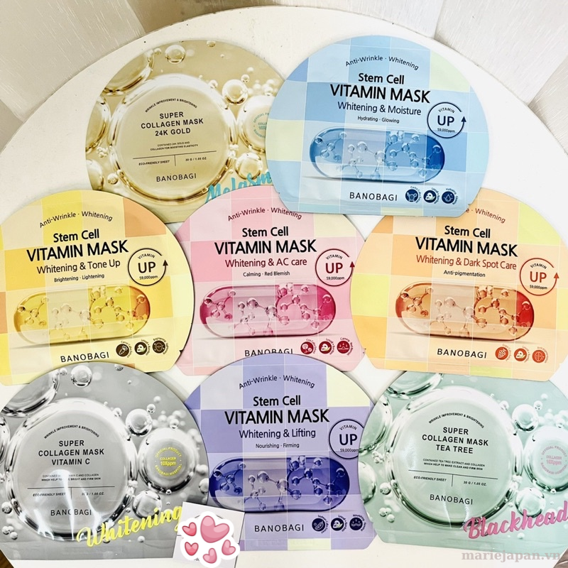 Mặt nạ giấy Stem Cell Banobagi hiện tại đã có tại Marie Japan với 10 phân loại sau: