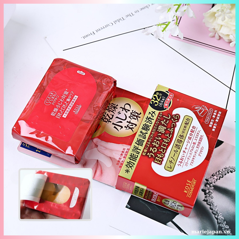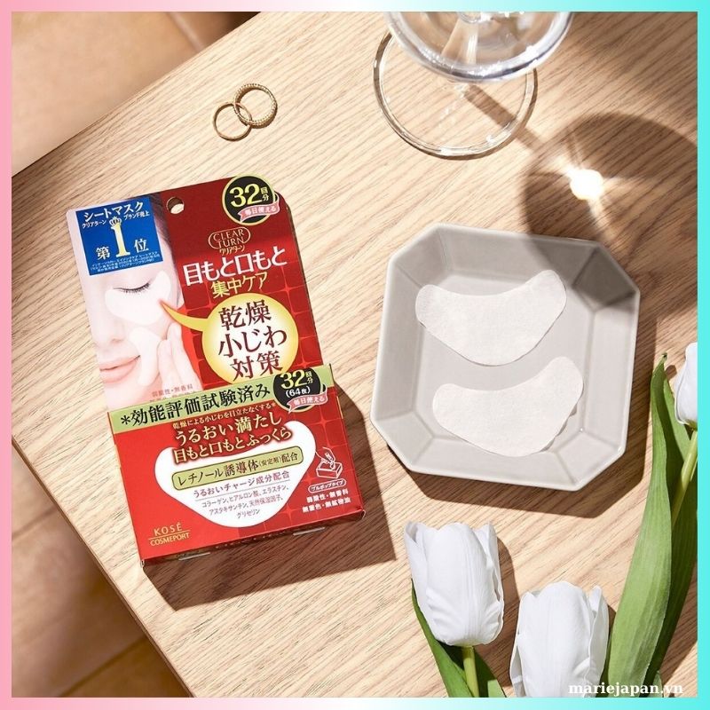 - Mặt nạ mắt Kose Clear Turn Moist 64 miếng gồm 32 cặp giúp chăm sóc mắt vô cùng tiện lợi