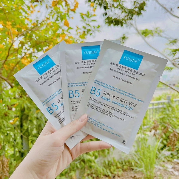 - Phục hồi da, giảm kích ứng: mặt nạ YuejinB5 Repair Control EGF dòng mặt nạ phục hồi da, dưỡng da giảm khó chịu, giảm đỏ, giảm sưng tấy, châm chít da… Dưỡng da nhanh lành sẹo.