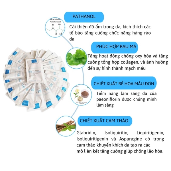 - Dưỡng da săn chắc, tăng cường collagen cho da khỏe mạnh: Khi dưỡng chất vào da, tăng hiệu quả chăm sóc da cũng như tăng sinh collagen tăng cường làm săn chắc và giúp da tăng cường hoạt động chống oxy hoá và tổng hợp collagen hiệu quả.