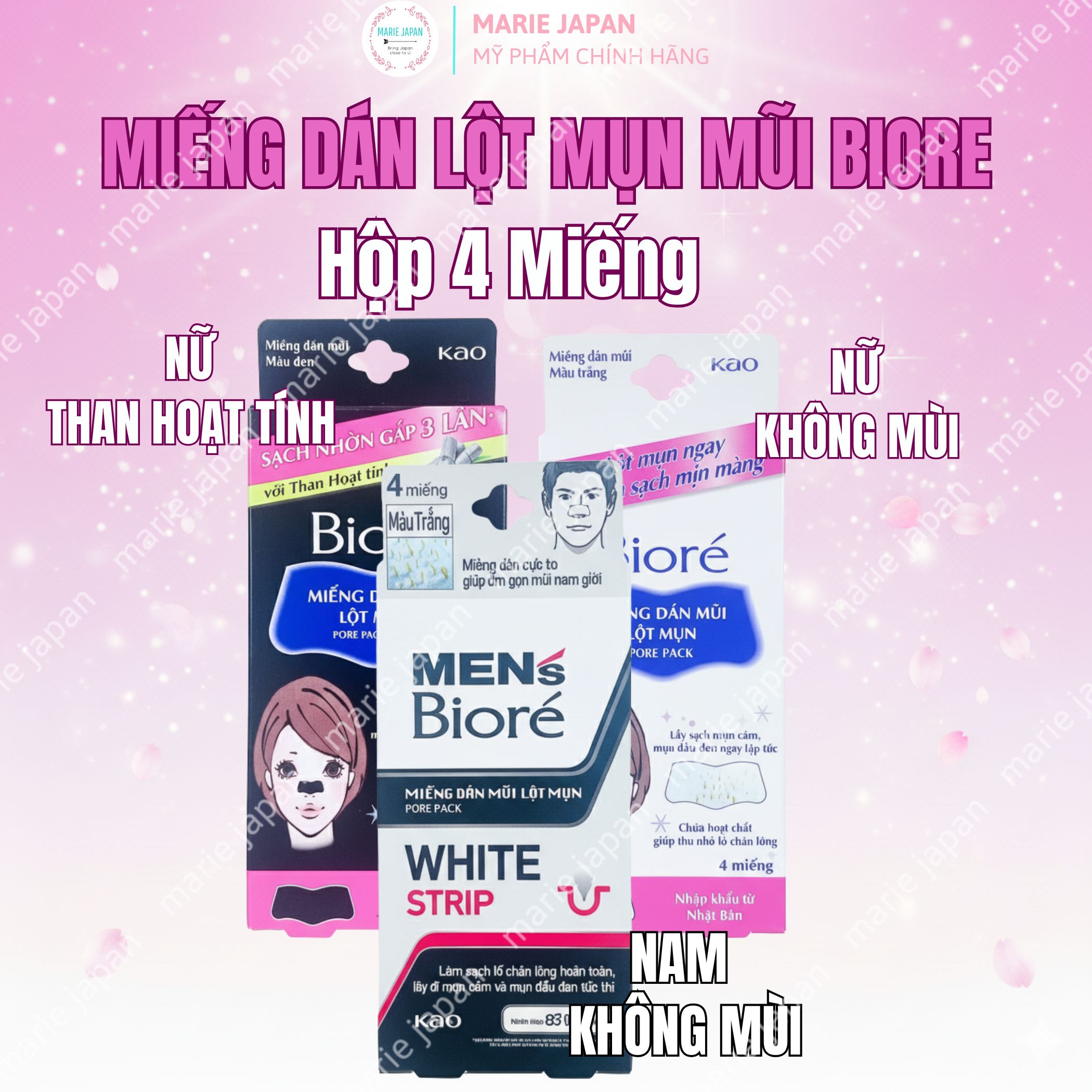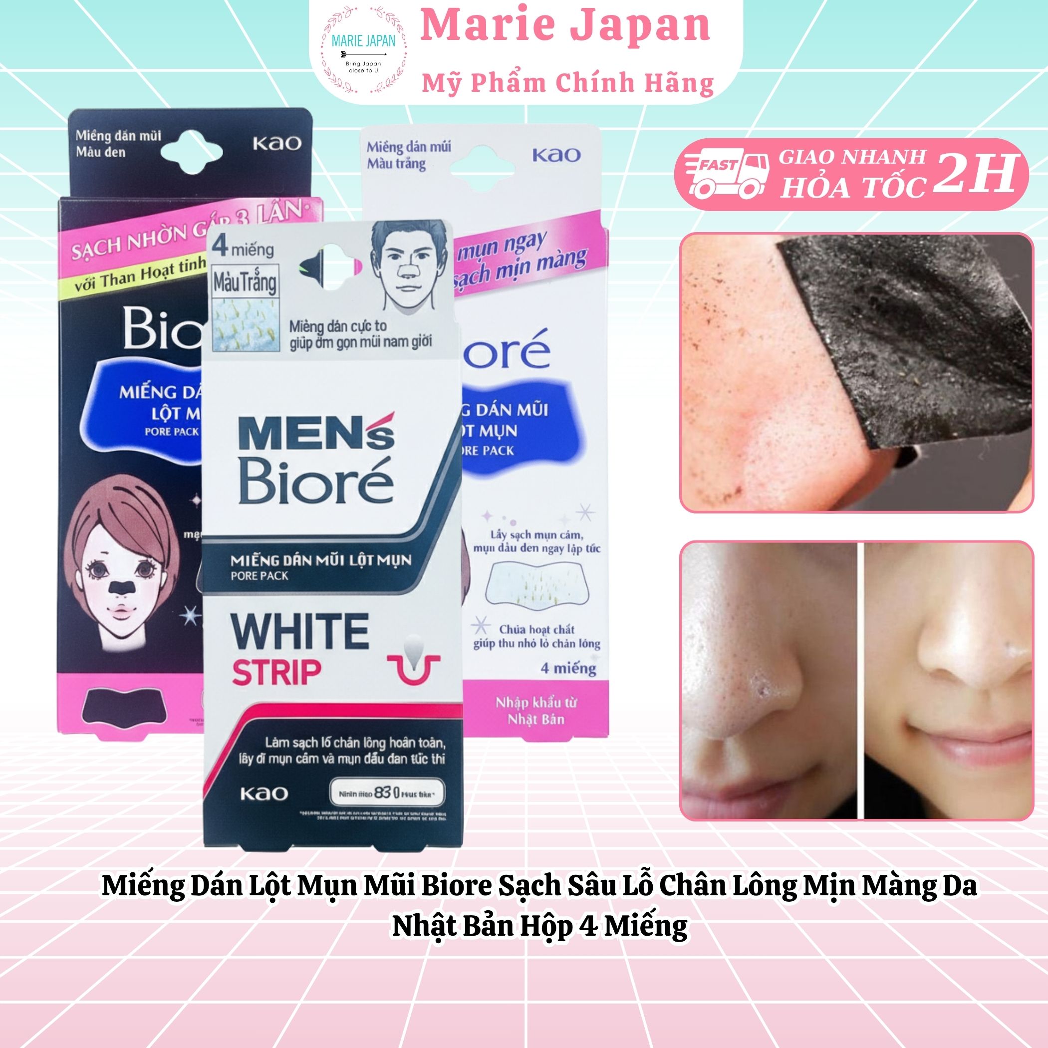 Miếng Dán Lột Mụn Mũi Biore Sạch Sâu Lỗ Chân Lông Mịn Màng Da Nhật Bản Hộp 4 Miếng