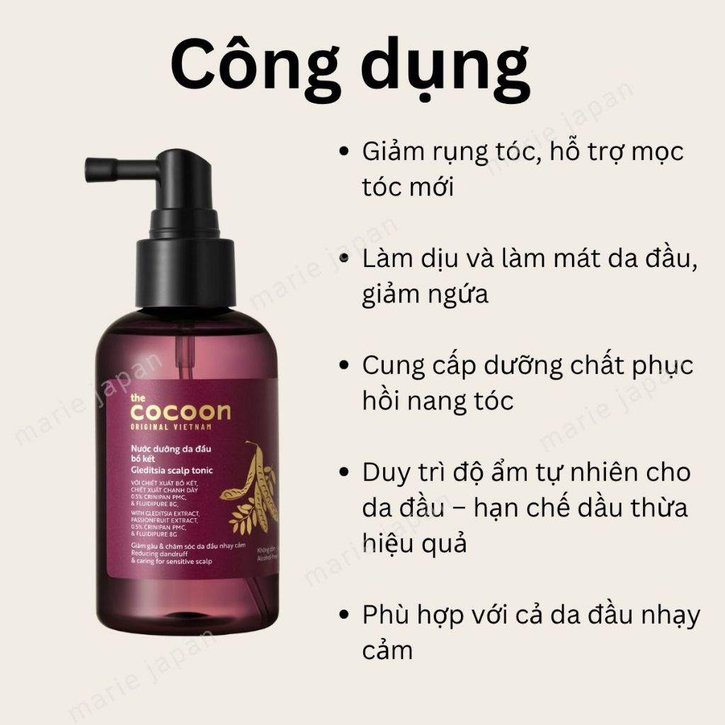 Nước Dưỡng Tóc Bồ Kết Cocoon Gleditsia Scalp Tonic Giảm Gàu Giảm Gãy Rụng Tóc Bóng Khỏe 140ml