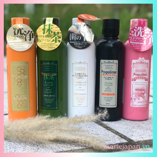 Marie Japan đã lên kệ 5 phân loại nước súc miệng Propolinse với các công dụng khác nhau để phù hợp với nhu cầu và sở thích riêng của nàng: