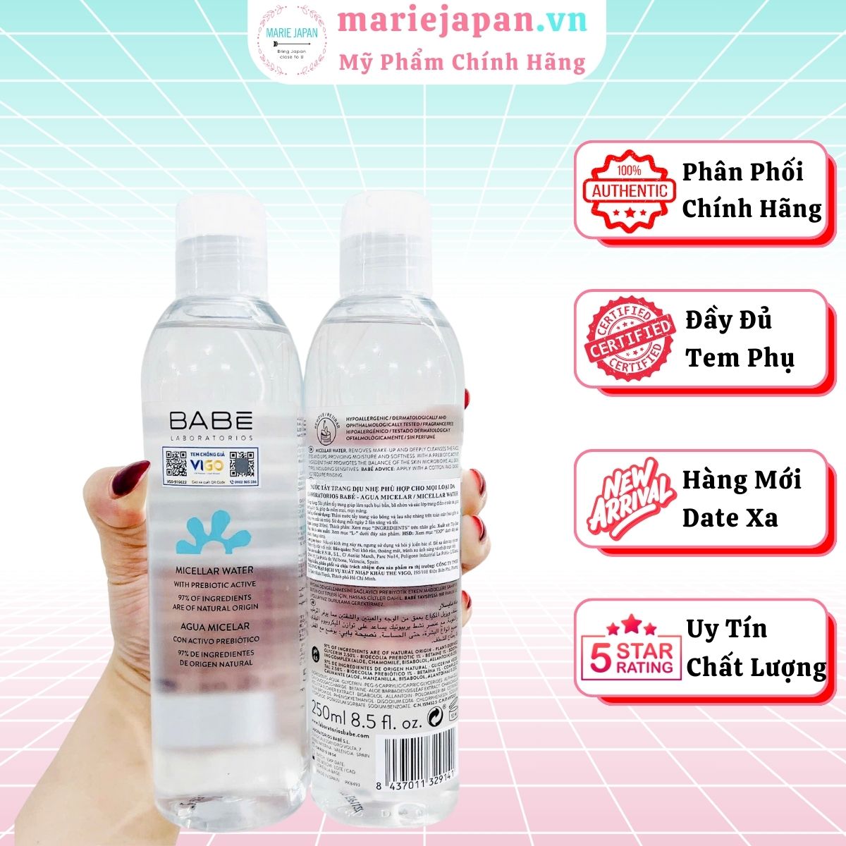 - Nước tẩy trang Agua Micellar Micellar Babe là sản phẩm dành cho da nhạy cảm, giúp làm sạch da một cách nhẹ nhàng mà không gây kích ứng. Với công thức chứa Prebiotics và Micelles, sản phẩm này có khả năng loại bỏ các tạp chất và bụi bẩn trên da, đồng thời cải thiện độ ẩm tự nhiên của da.